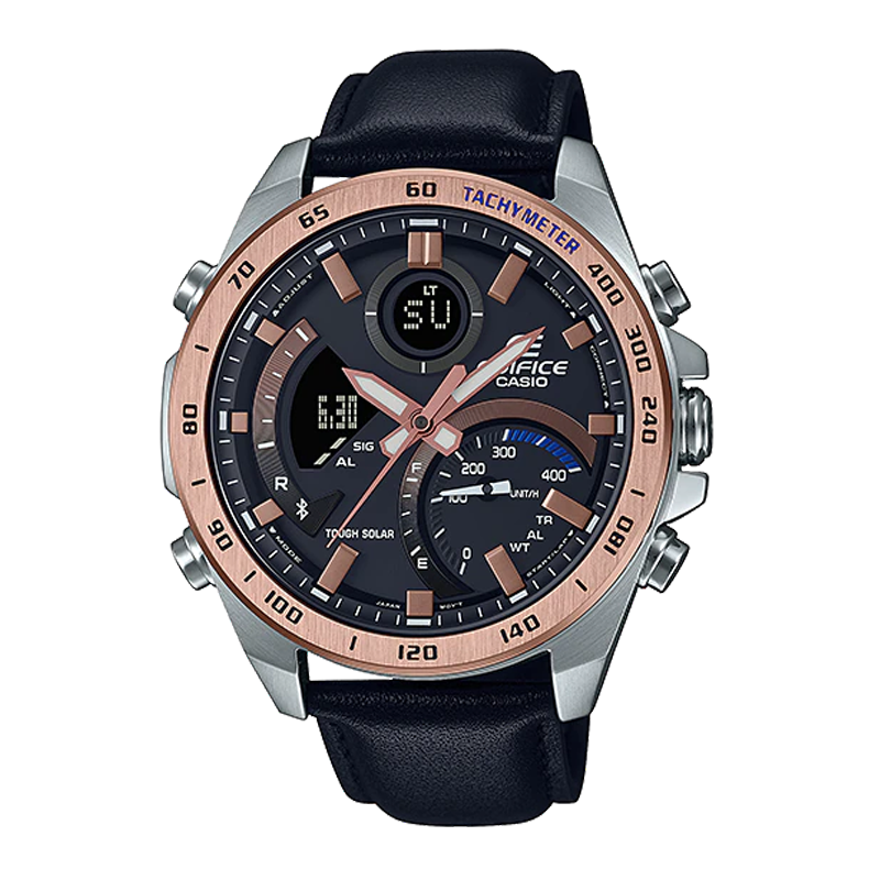 – Kết nối Bluetooth với điện thoại thông minh qua ứng dụng Edifice Connected để tự động chỉnh giờ chính xác và xem giờ thế giới của hơn 300 thành phố.