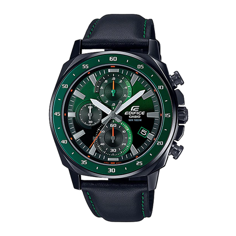 Đồng hồ Casio Edifice dây da xanh-đen thể thao, thiết kế chronograph năng động phù hợp đeo hằng ngày.