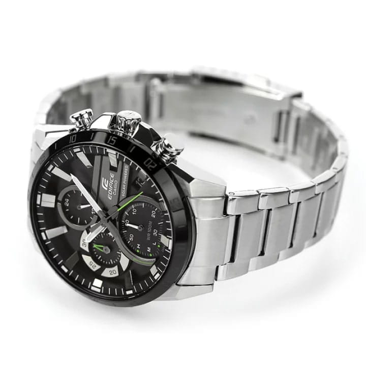 Thiết kế thể thao lấy ý tưởng từ chủ đề xe đua EDIFICE, toát lên tốc độ, khả năng kiểm soát cũng như tiện ích thực tế. Lớp mạ ion đen tạo nên gờ chống trầy xước, đồng thời hệ thống sạc năng lượng mặt trời dự trữ đủ năng lượng cho 5 tháng sử dụng bình thường sau khi sạc đầy.