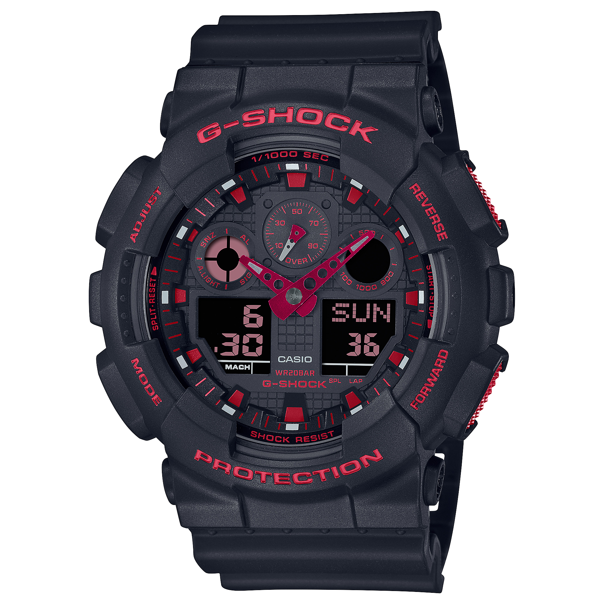Những đường kẻ màu đỏ như đang bắt lửa bên trong lớp đỏ rực và đen đặc trưng tạo nên tuyên ngôn táo bạo, mạnh mẽ và thể hiện sự bền bỉ tuyệt đối của thương hiệu G-SHOCK.