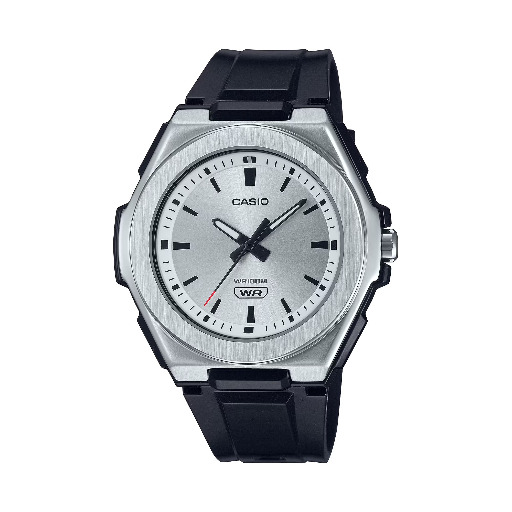 Đồng hồ nữ phong cách thể thao – hiện đại, dùng máy quartz bền bỉ, vỏ và dây nhựa nhẹ, viền kim loại chắc chắn và chống nước 100 m. Thiết kế mặt lớn dễ xem giờ, phù hợp đeo hằng ngày, đi học, đi làm hoặc hoạt động ngoài trời.