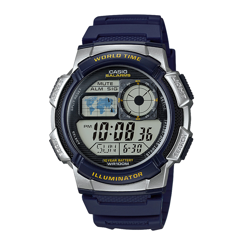 AE-1000W-2AVDF có thiết kế thể thao mạnh mẽ với mặt số đa chức năng rõ ràng và phong cách năng động, phù hợp cho việc đeo thường xuyên và phối đồ hàng ngày.