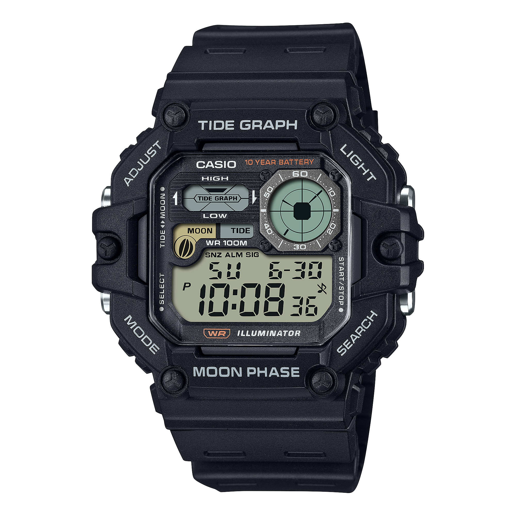Mẫu kỹ thuật số mới mặt to, được trang bị nhiều chức năng thể thao đi biển hữu ích. Lớp vỏ ngoài chắc chắn, chịu lực cao và mặt số có nhiều ô nhỏ tạo nên vẻ đẹp của một thiết bị ngoài trời.