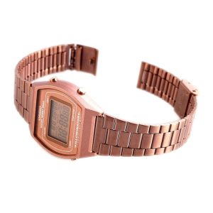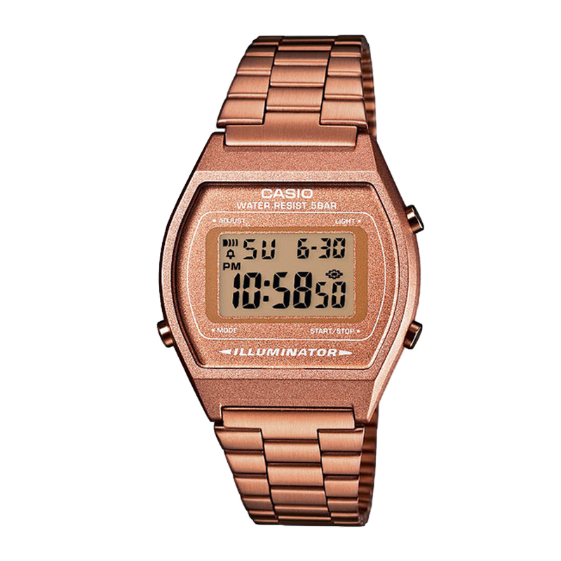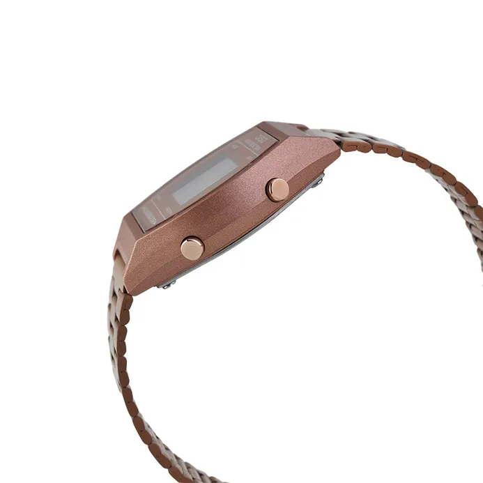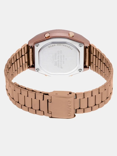 Mẫu đồng hồ điện tử phong cách retro cổ điển, dùng máy Quartz, có đèn LED, báo thức, bấm giờ, đếm ngược, hiển thị ngày tháng và định dạng 12/24h. Đồng hồ sở hữu dây thép không gỉ mạ vàng hồng, chống nước 50M, kích thước nhỏ gọn, dễ đeo, phù hợp cả nam lẫn nữ.