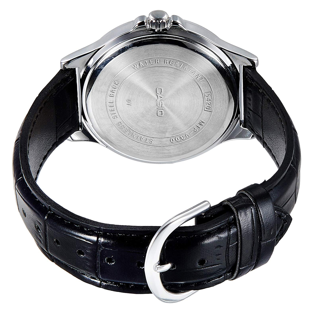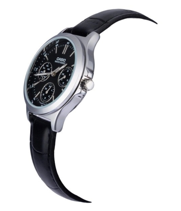 Thiết kế thanh lịch với mặt số đen đơn giản và dây da tối màu, dễ phối cùng trang phục công sở hoặc sử dụng hằng ngày.