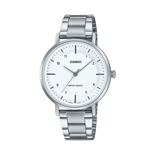 Thiết kế đơn giản với mặt số trắng trang nhã, kiểu dáng thanh lịch dễ phối đồ, thích hợp cho môi trường công sở và sinh hoạt thường ngày.