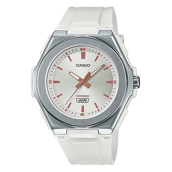 ồng hồ nữ phong cách thể thao–trẻ trung, sử dụng máy quartz bền bỉ, vỏ và dây nhựa nhẹ, chống nước 100 m, phù hợp đeo hằng ngày hoặc hoạt động ngoài trời. Mặt số lớn, dễ xem giờ, kết hợp viền kim loại giúp tổng thể vừa năng động vừa thanh lịch.
