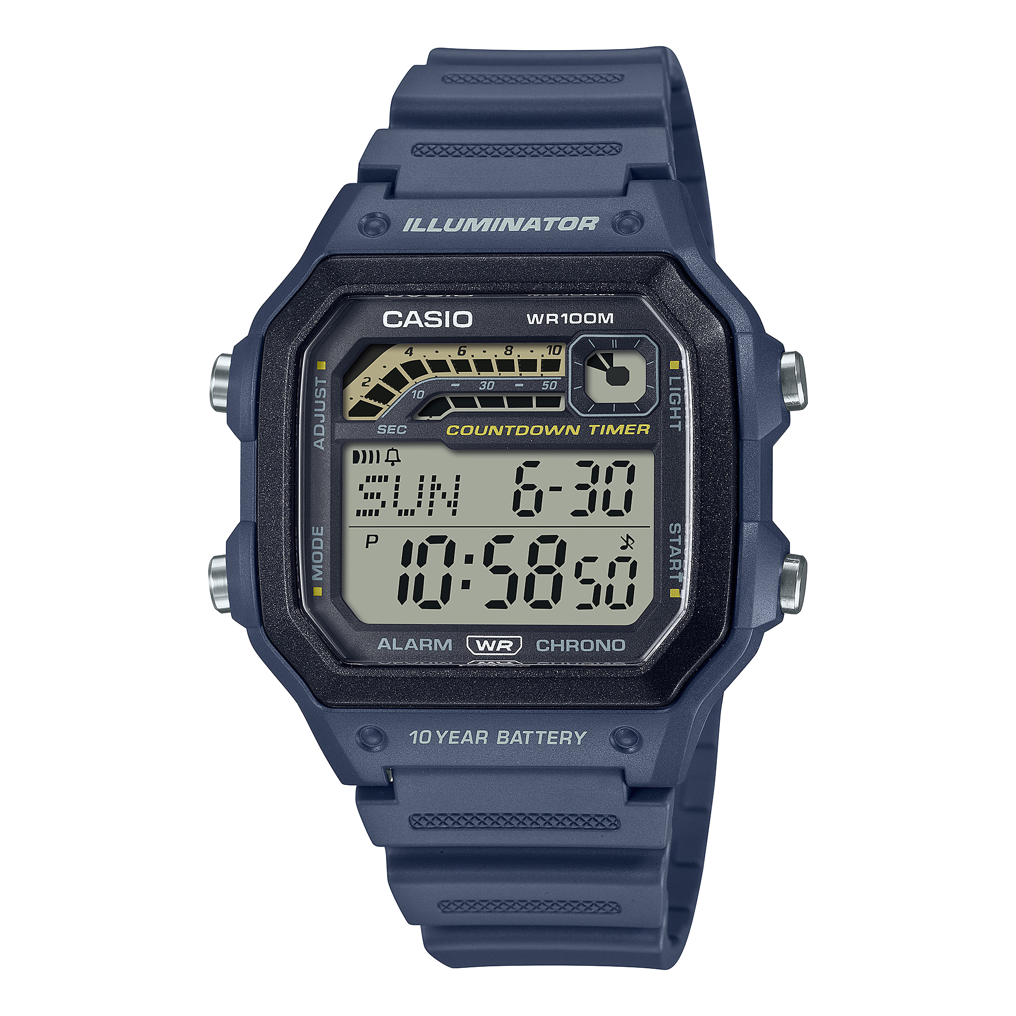 Đồng Hồ Casio WS-1600H-2AVDF Chính Hãng – CASIO giới thiệu mẫu đồng hồ thể thao đa chức năng mới với nhiều tính năng và ưu điểm như: pin có tuổi thọ lên đến 10 năm, chống nước 100 mét, đèn LED nền, chức năng đếm ngược và báo thức,… Chúng được lấy cảm hứng từ các mẫu đồng hồ thiết kế thể thao của những năm 1990.
