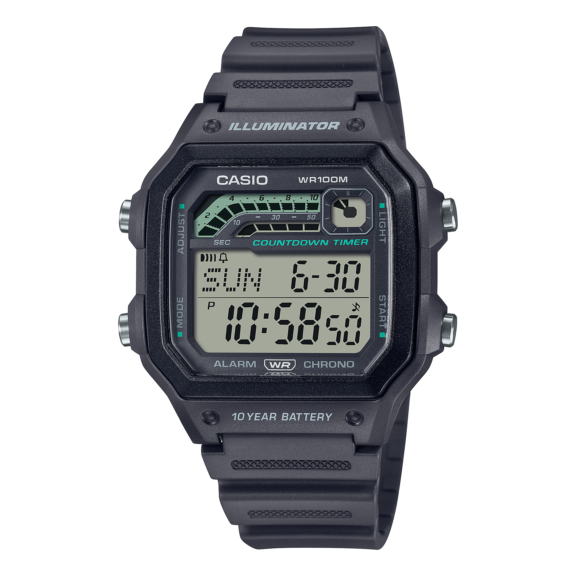 Đồng Hồ Casio WS-1600H-8AVDF Chính Hãng – CASIO giới thiệu mẫu đồng hồ thể thao đa chức năng mới với nhiều tính năng và ưu điểm như: pin có tuổi thọ lên đến 10 năm, chống nước 100 mét, đèn LED nền, chức năng đếm ngược và báo thức,… Chúng được lấy cảm hứng từ các mẫu đồng hồ thiết kế thể thao của những năm 1990.