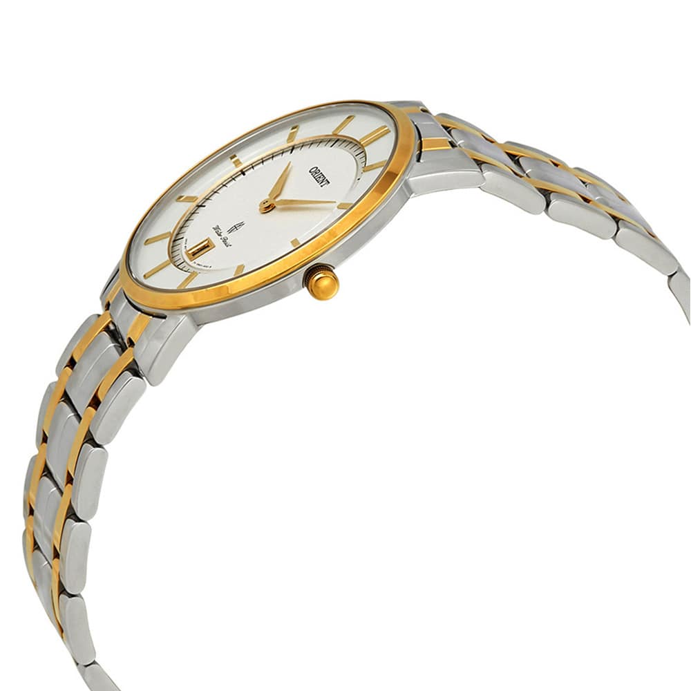 Mang thiết kế thanh lịch – sang trọng, mặt trắng tối giản kết hợp dây thép demi nổi bật. Máy Quartz Nhật bền bỉ, kính sapphire chống xước, chống nước 50m, lịch ngày tiện dụng. Mẫu đồng hồ mỏng nhẹ, gọn tay, phù hợp công sở, đi làm và làm quà tặng cao cấp.