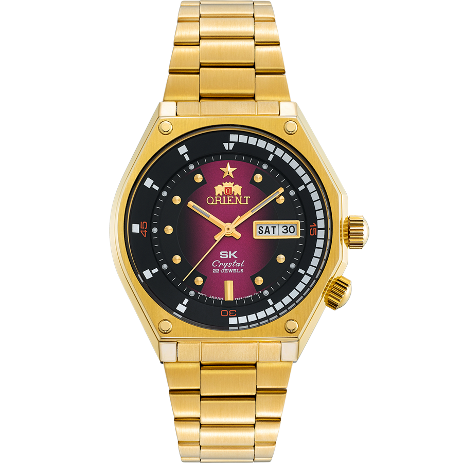 Đồng hồ cơ Automatic F6922 với thiết kế vỏ mạ vàng sang trọng, mặt đỏ nổi bật, dây thép 316L bền bỉ. Size 42 mm nam tính, kính khoáng cứng, chống nước 5ATM. Phiên bản Special Edition dành riêng cho Việt Nam