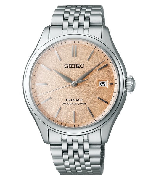 • Mặt số Araigaki độc bản: Sắc hồng nhạt ấm áp mô phỏng màu trái hồng ngâm, kết hợp họa tiết dệt lụa tinh xảo tạo nên chiều sâu đầy nghệ thuật.