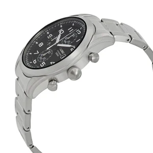 Mẫu đồng hồ chronograph thể thao, sử dụng bộ máy Quartz bền bỉ của Nhật Bản, nổi bật với đường kính mặt lớn 45mm, mặt số màu đen nam tính và dây đeo thép không gỉ chắc chắn. Với khả năng chống nước 10 ATM và tính năng bấm giờ tiện lợi, đây là lựa chọn hoàn hảo cho những quý ông yêu thích phong cách mạnh mẽ, năng động.