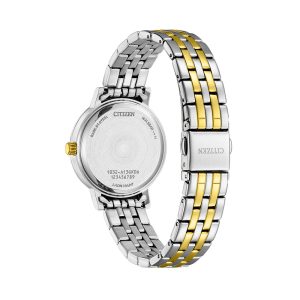 Là mẫu đồng hồ quartz (máy pin) chronograph sang trọng của Nhật Bản, nổi bật với thiết kế mạ vàng PVD quý phái và mặt kính sapphire chống xước. Với đường kính mặt 36mm và khả năng chống nước 10 ATM, chiếc đồng hồ này là sự kết hợp hoàn hảo giữa phong cách tinh tế và tính năng tiện dụng, phù hợp cho những quý cô hiện đại.